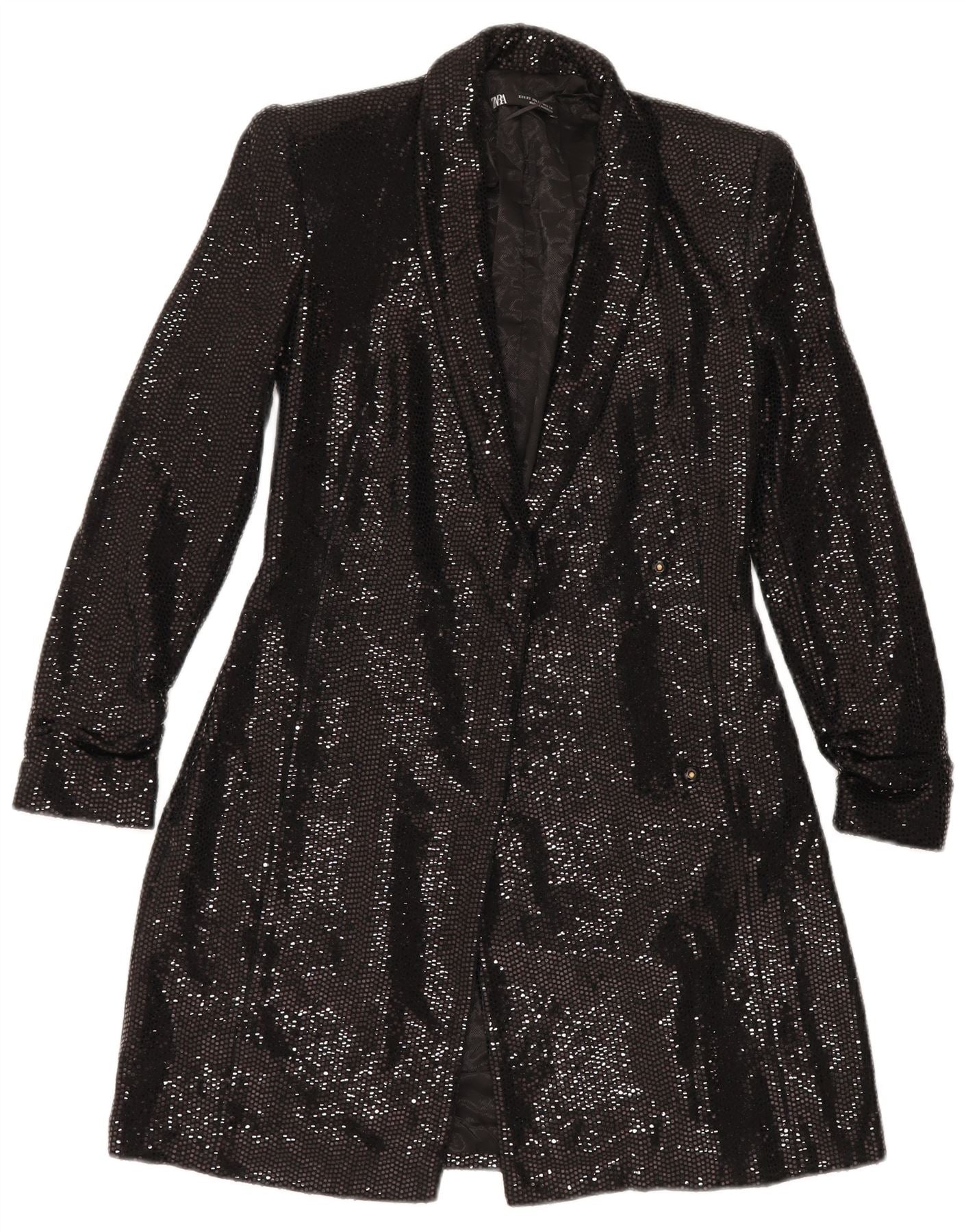Jachetă pentru femei ZARA cu paragate deschisă UK 6 XS Poliamidă neagră