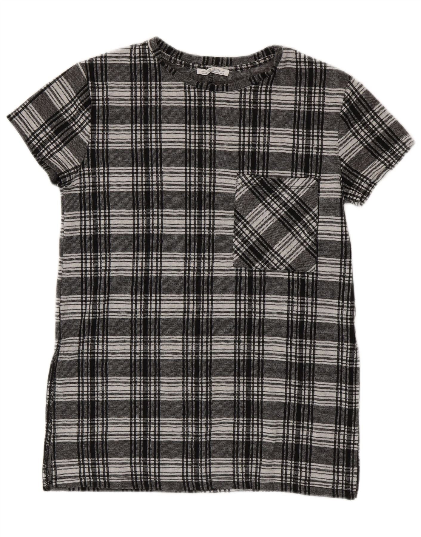 Bluză cu mânecă scurtă pentru femei ZARA, 10 UK 10, carouri negru mici