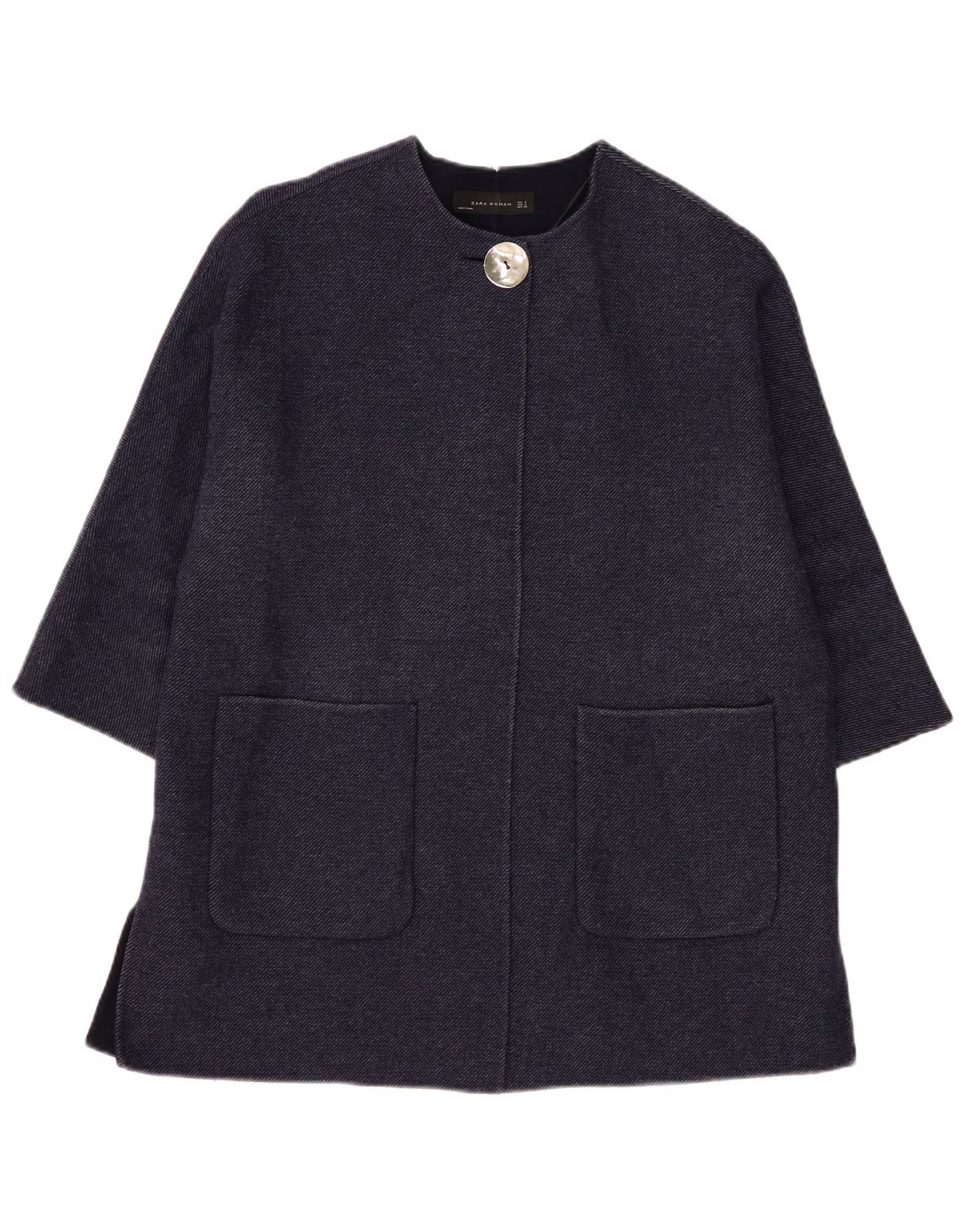 ZARA pardesiu supradimensionat pentru femei cu mâneci 3/4 UK 10 mic din lână bleumarin