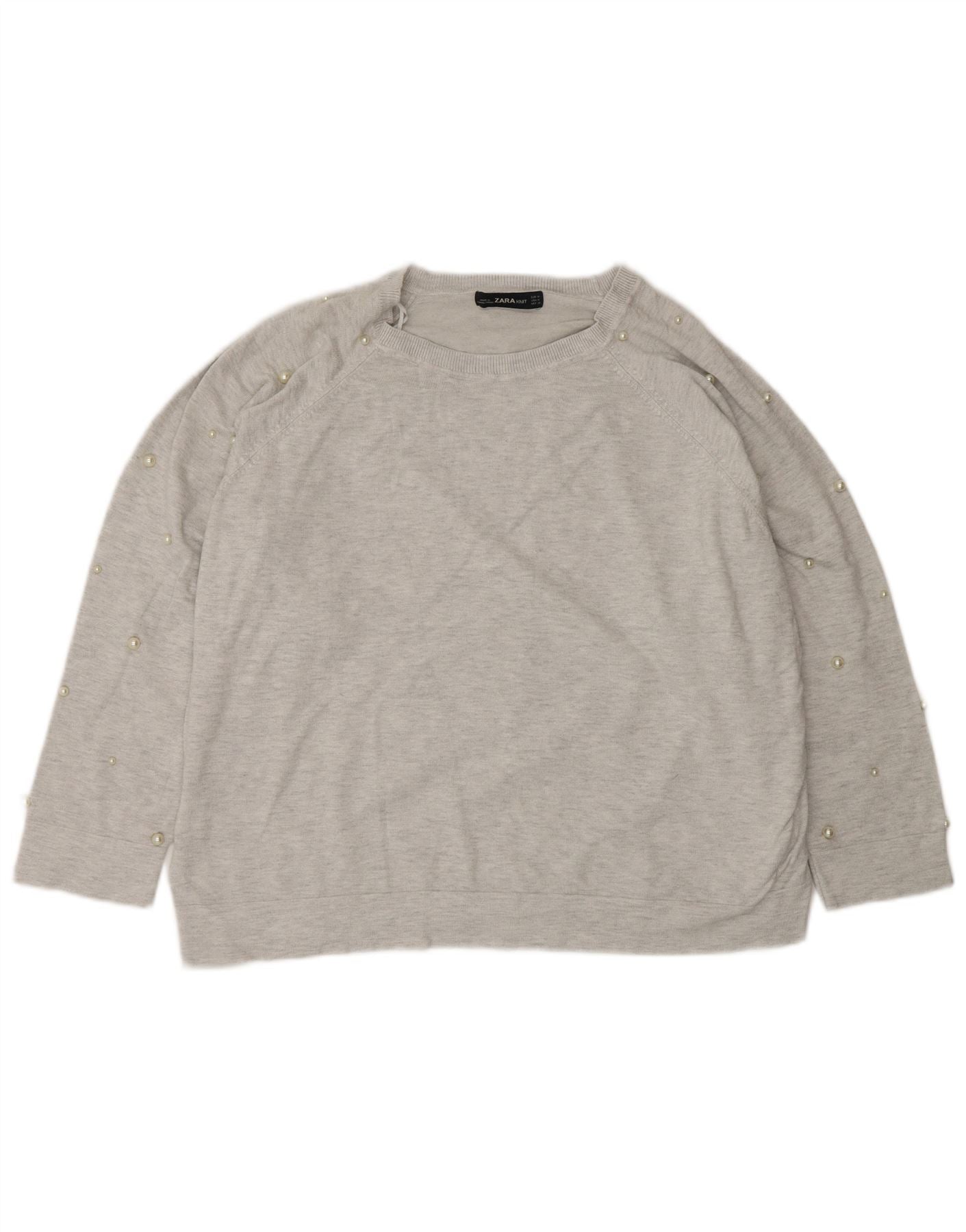 Pulover de damă ZARA cu gât de barcă supradimensionat, UK 14, gri mediu