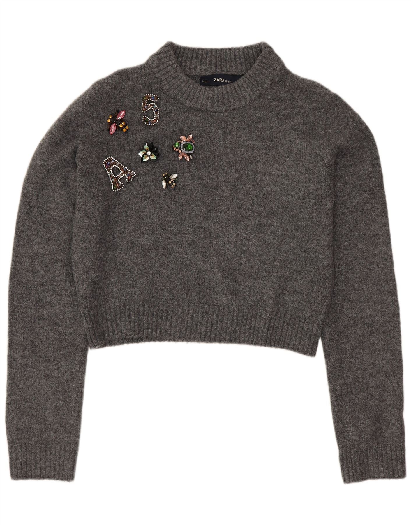 Pulover supradimensionat pentru femei Zara cu decolteu rotund cu grafică UK 10 Mic Gri