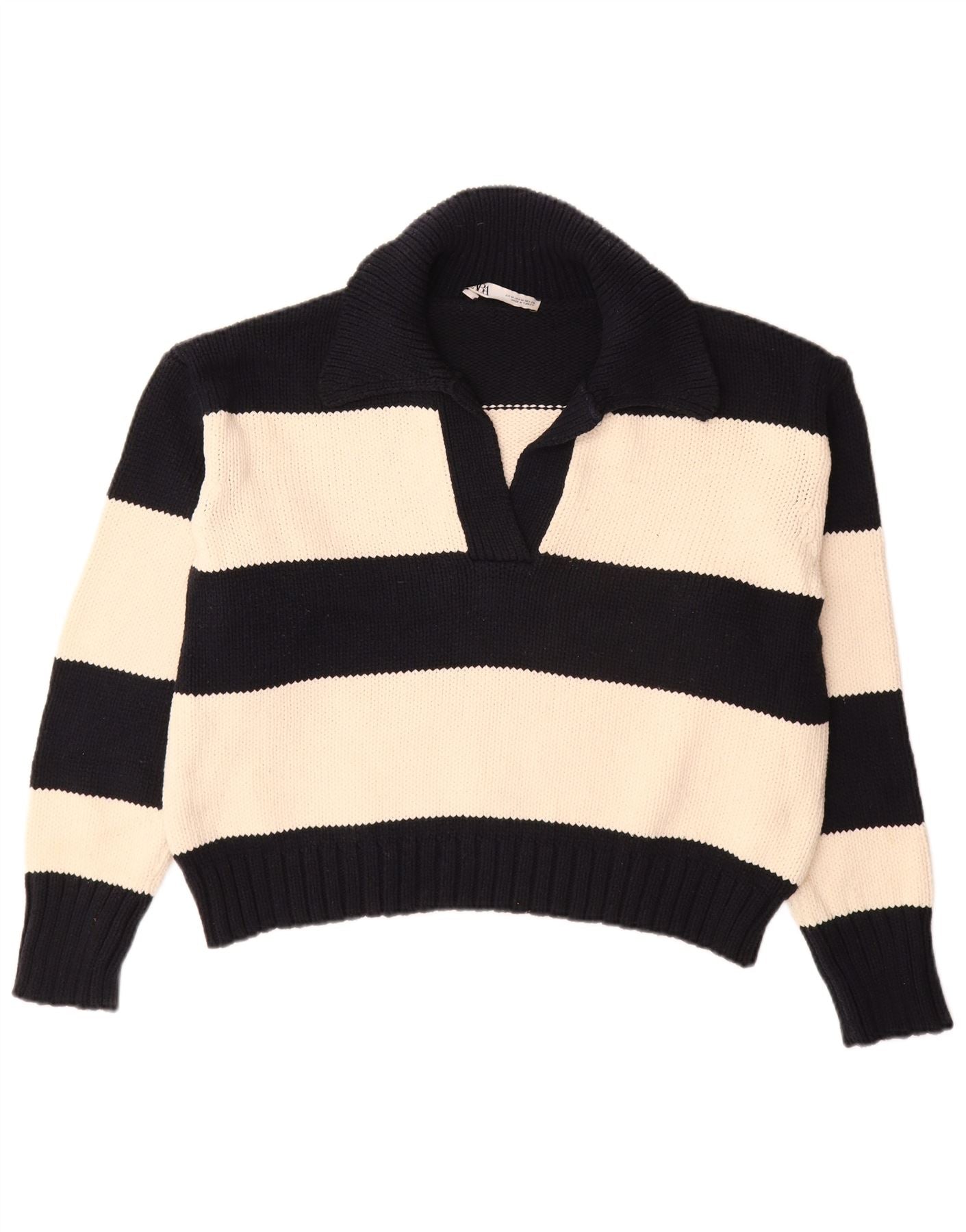 Pulover pentru femei ZARA cu gât polo supradimensionat UK 14 Medium Black Dunge