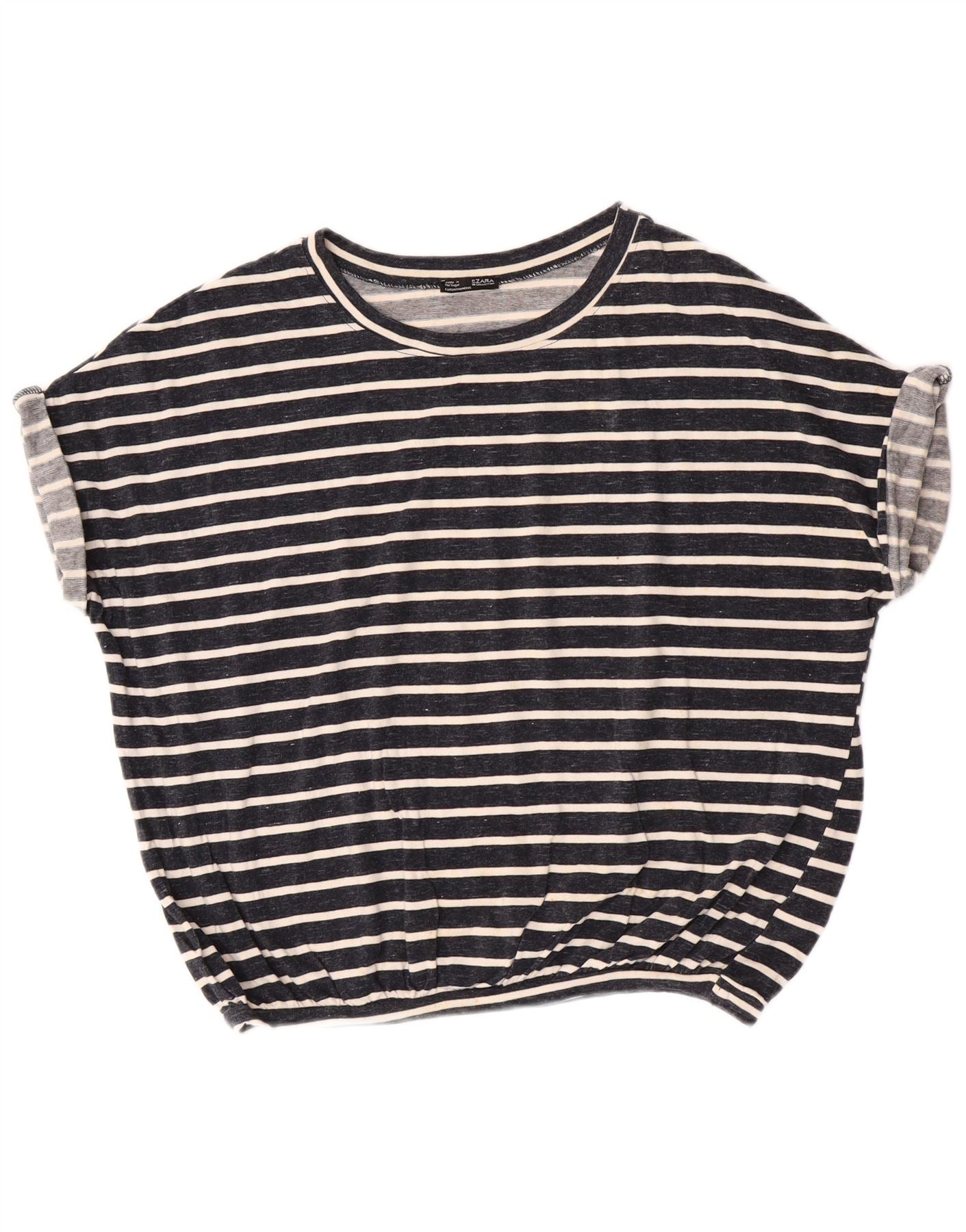 Home > Femei > Îmbrăcăminte Depop > Tricou supradimensionat pentru femei Zara UK 10 mic din bumbac cu dungi bleumarin