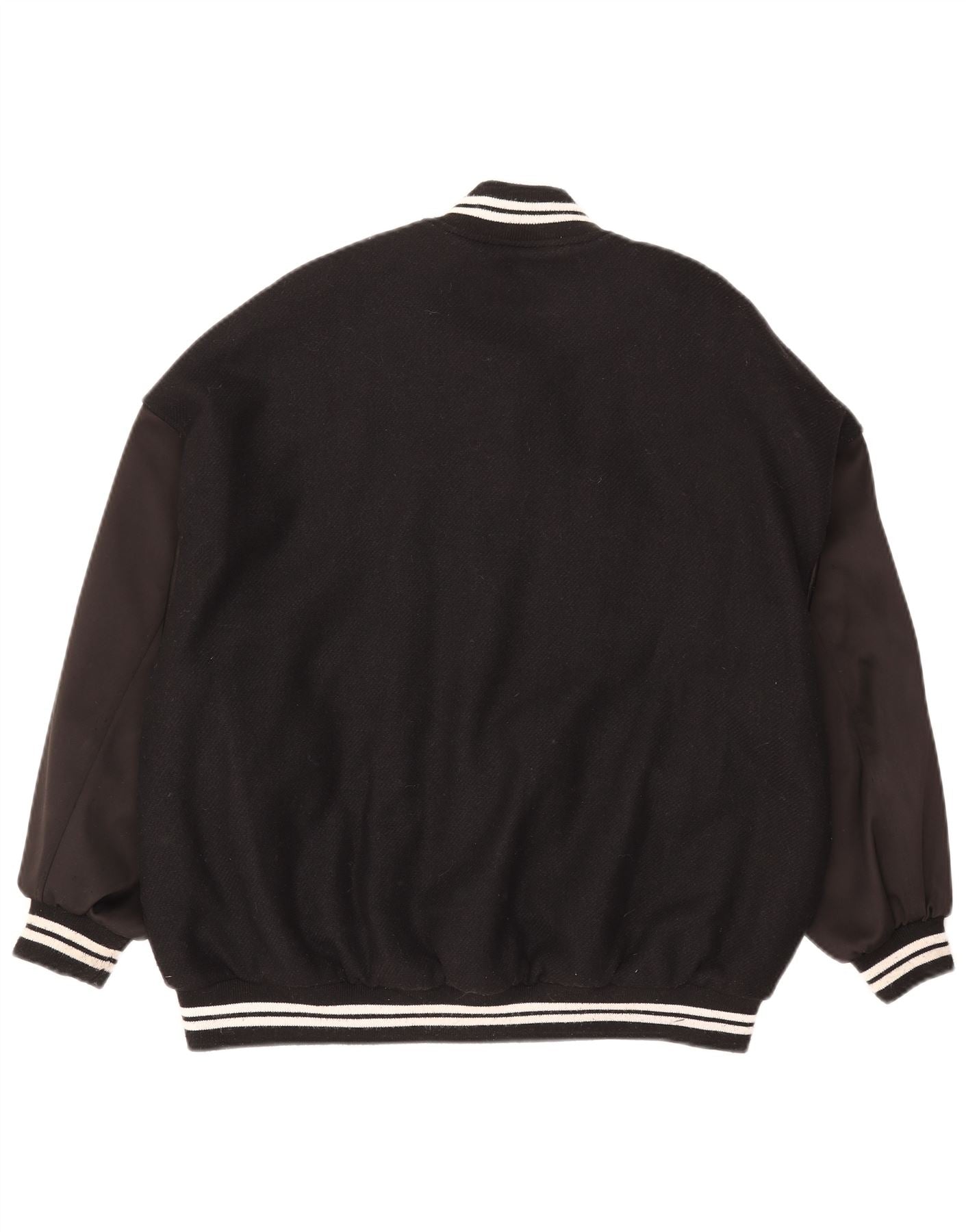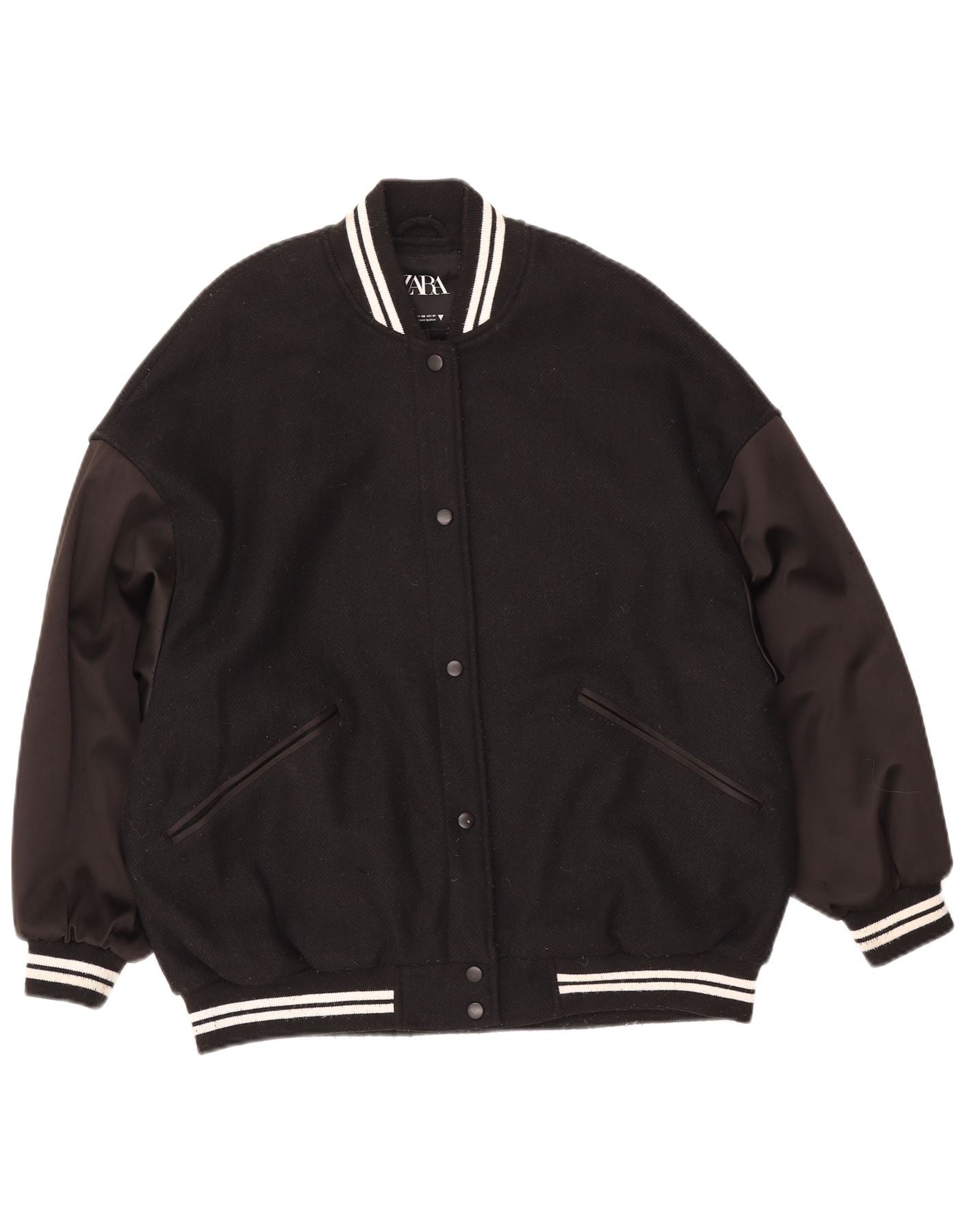Jachetă Varsity oversize ZARA pentru femei UK 6 XS Lână neagră color bloc