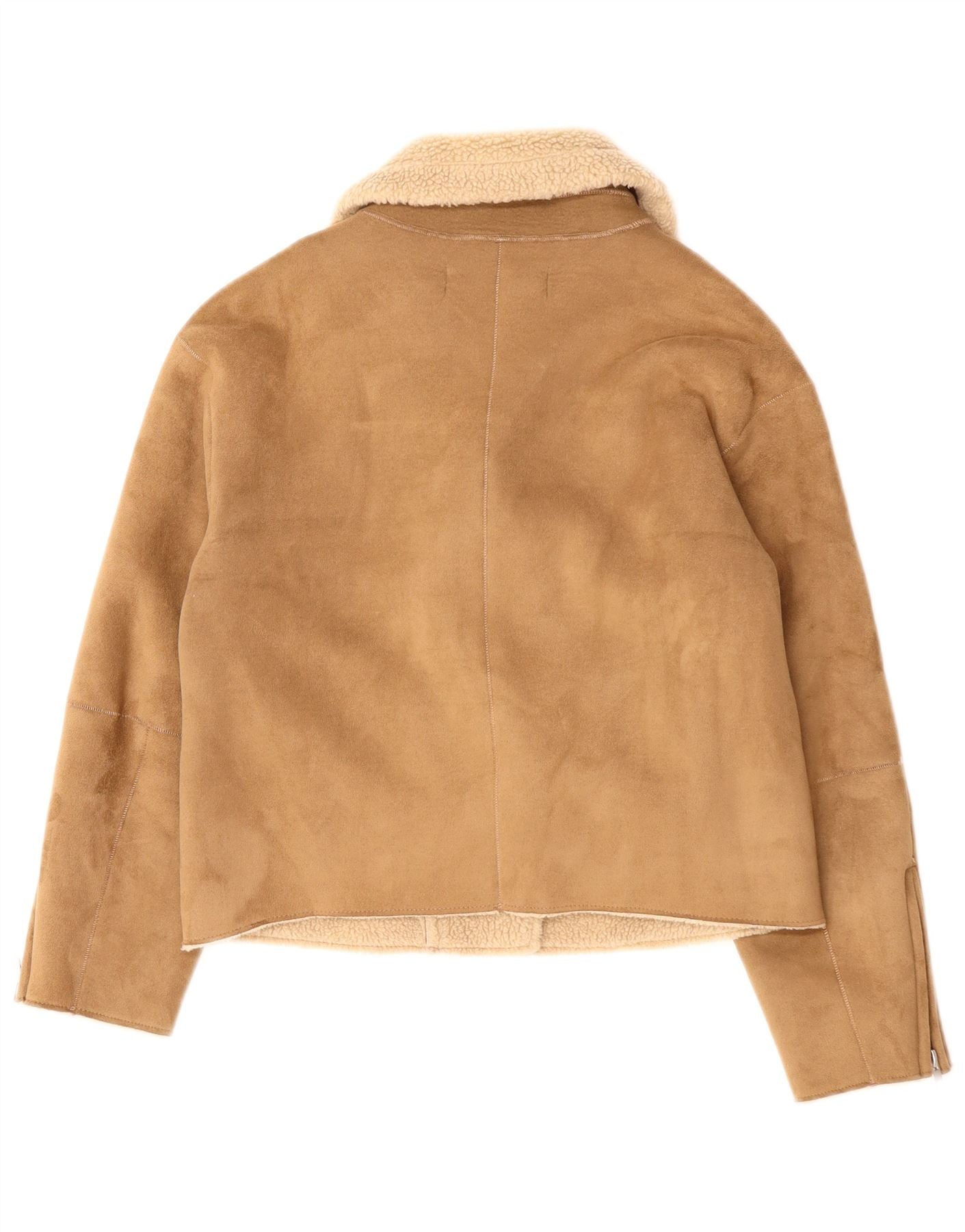 Jachetă de motociclist din piele intoartă sintetică pentru femei Zara UK 10 Mic, bej, poliester