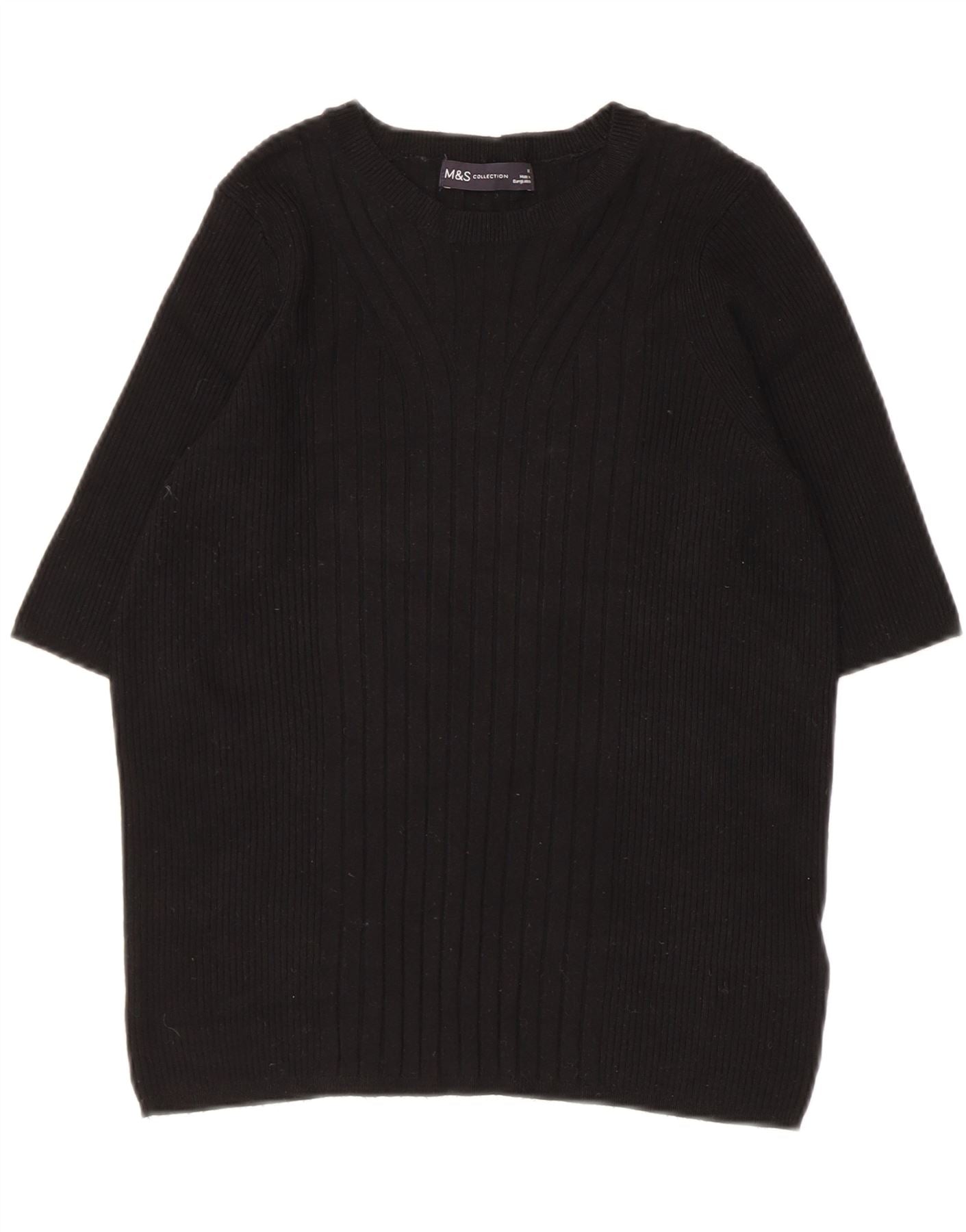 ZARA Womens Short Sleeve Boat Neck Jumper Sweater UK 12 Medium Black
