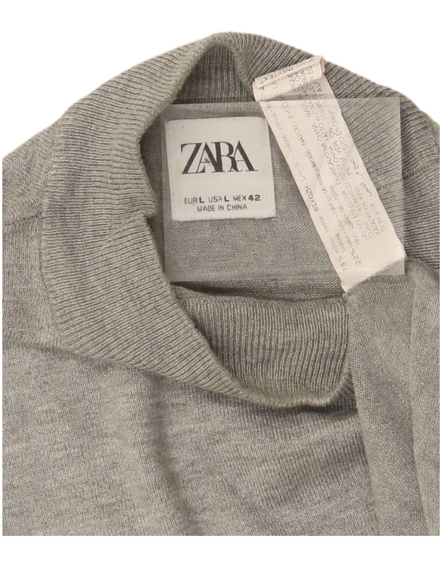 Pulover de damă ZARA cu mânecă scurtă cu gât țestoasă, mare, gri