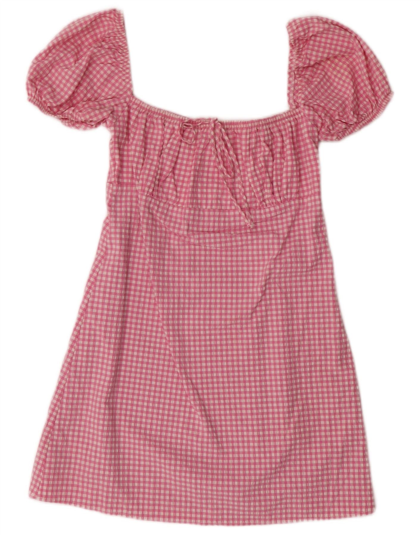 Rochie de soare cu mâneci scurte pentru femei Zara UK 12 Roz mediu Gingham Boemă