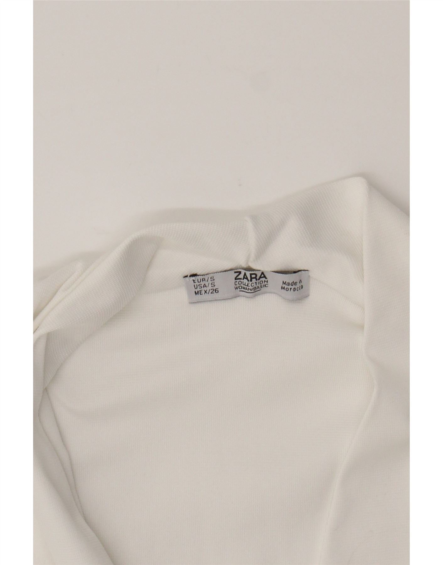 - AI Description: This Zara bodysuit offers a classic style in a clean white knit fabric. The sleeveless design and V-neckline provide a flattering silhouette, while the regular fit ensures comfortable wear. Featuring a convenient pull-on closure, this pre-owned bodysuit is in excellent condition and ready to elevate your wardrobe.