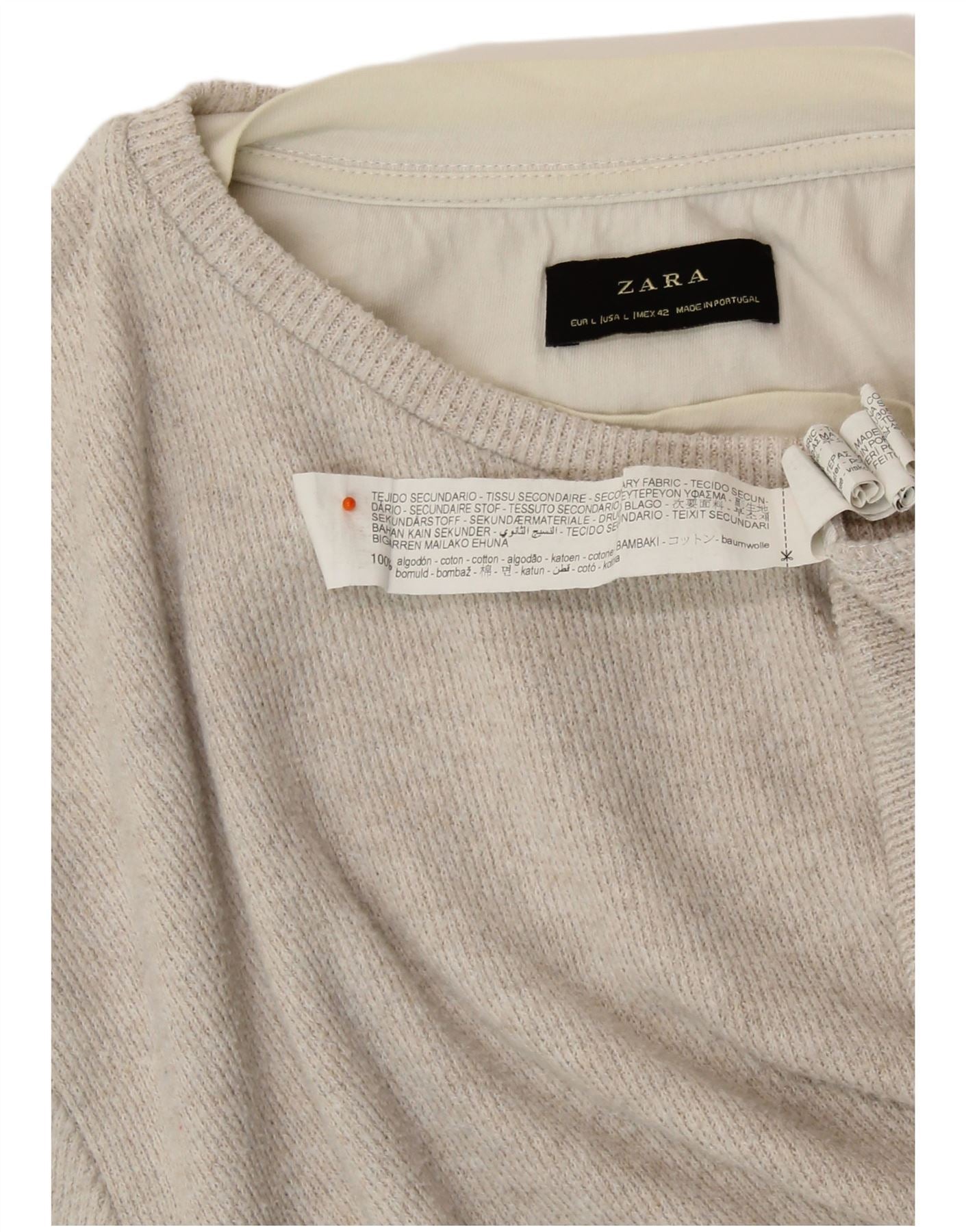 Top femei ZARA cu mânecă lungă UK 16 mare, bej, bumbac