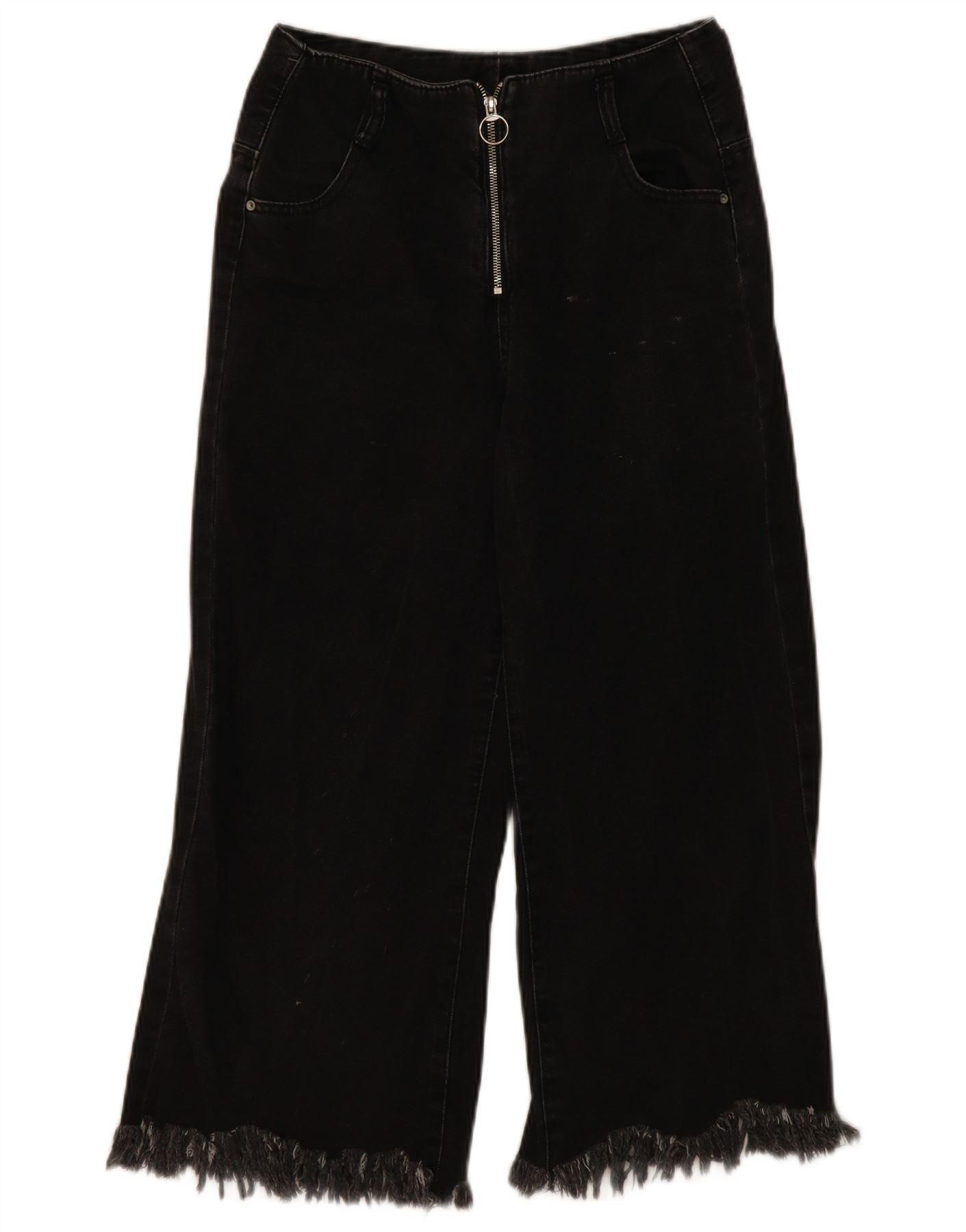 ZARA Womens Trafaluc Crop Wide Leg Jeans EU 36 XS W30 L23 Black Cotton