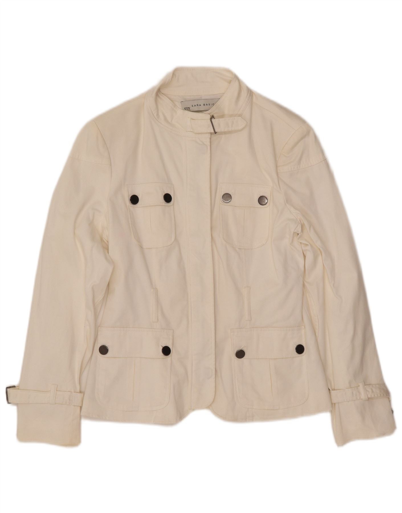 Jachetă pentru femei ZARA UK 12, bumbac alb mediu
