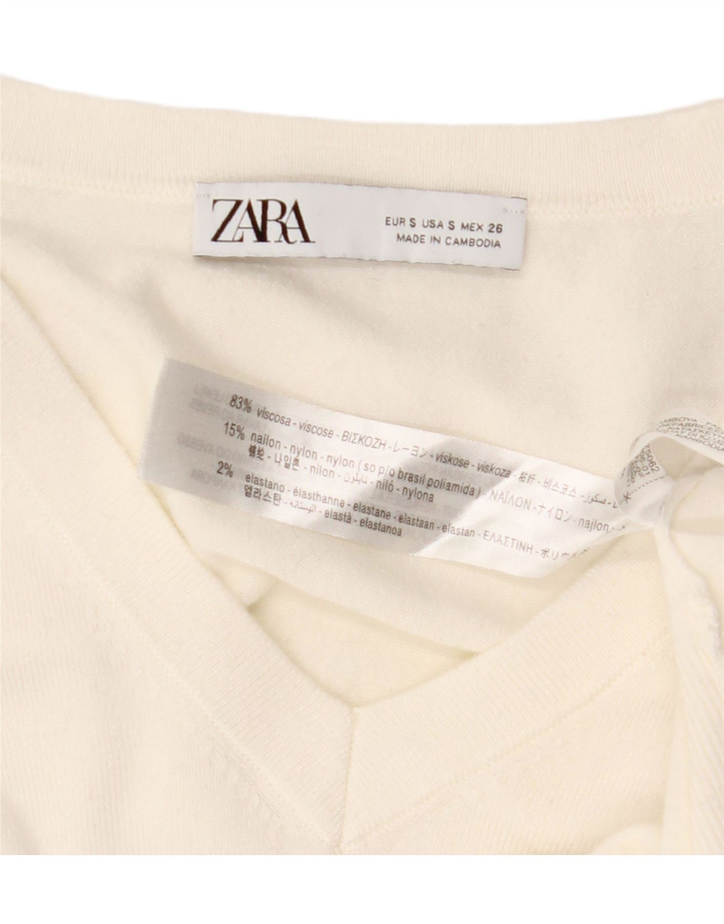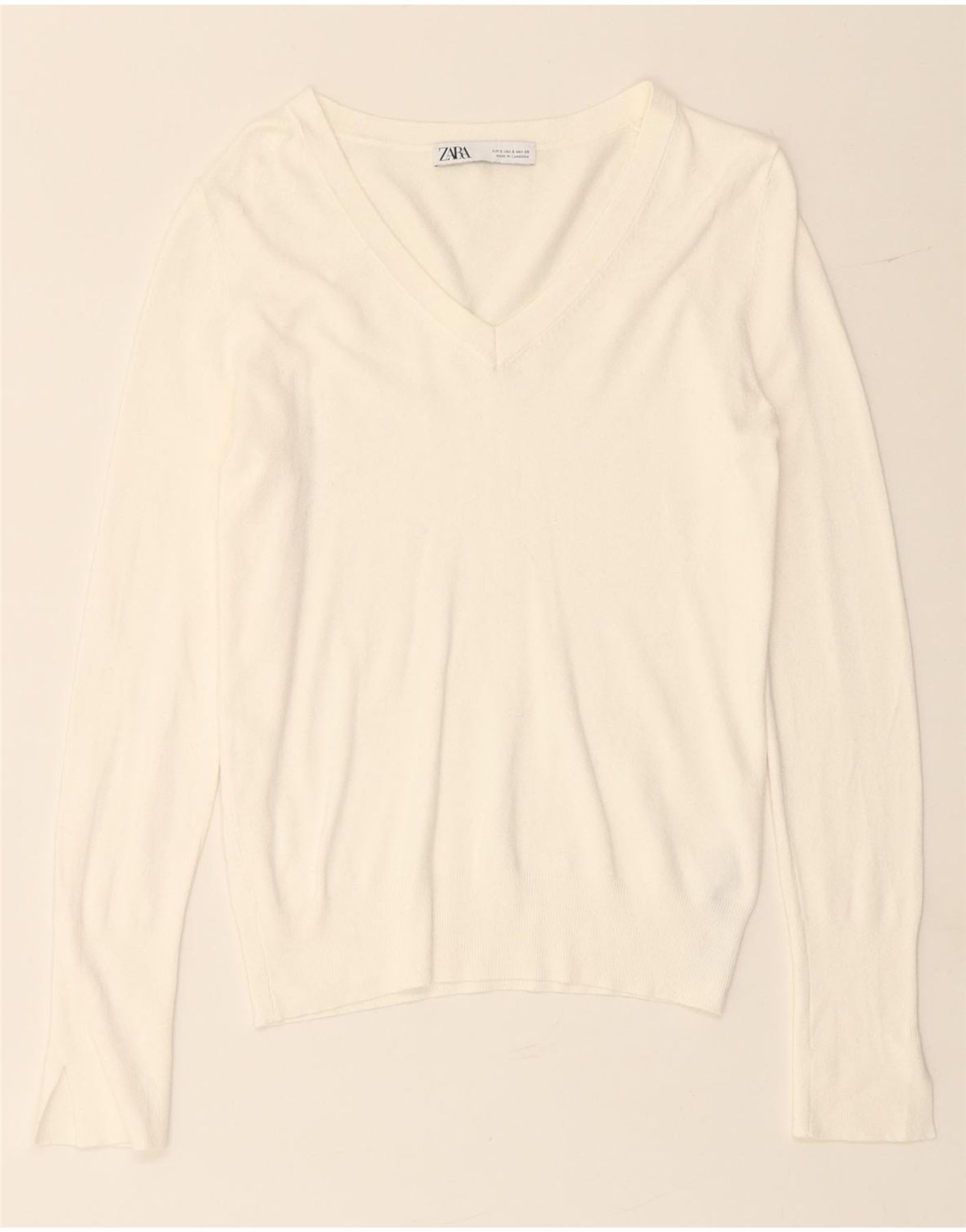 Pulover cu decolteu în V ZARA pentru femei UK 10 Small White Viscose