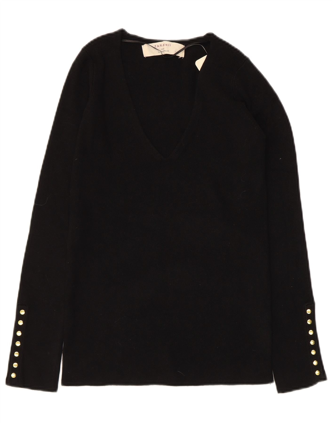 Pulover cu decolteu în V ZARA pentru femei UK 12, raion mediu negru