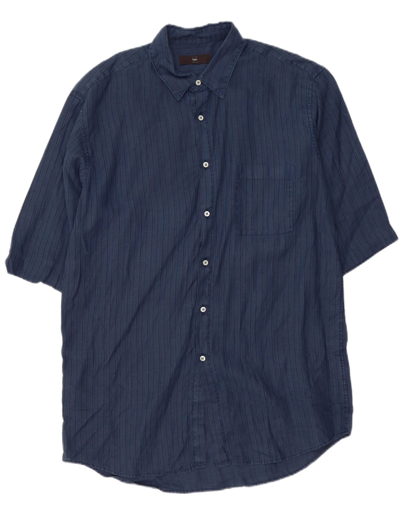 Cămașă cu mânecă scurtă pentru bărbați ZEGNA Mărimea 41 Mediu Bleumarin în dungi
